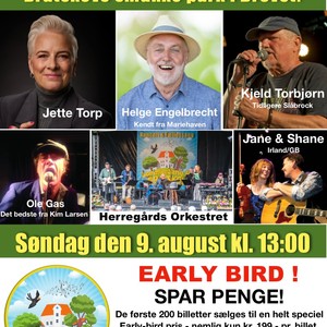 I år kan du glæde dig til at opleve Helge Engelbrecht, Ole Gas, Jane & Shane, Kjeld Torbjørn og Jette Torp, i samspil med det altid velspillende HerregårdsOrkesteret.